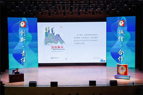 4月19日晚,大赛同期举办弘扬科学家精神报告会,原中国资源卫星应用中心高级工程师,“两弹一星”功勋科学家、中国科学院院士黄纬禄之女黄道群为参赛选手及邯郸市一中学生代表近千人分享了黄纬禄院士的传奇故事。她通过一系列感人至深的小故事,带领大家共同回顾了黄纬禄艰辛的求学科研历程,生动展现了前辈科学家勇攀高峰的科学精神和无私奉献的家国情怀。她勉励青年学子们要勇于攻坚克难,牢记使命担当,为加快实现科技自立自强贡献青春力量。