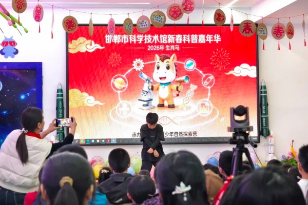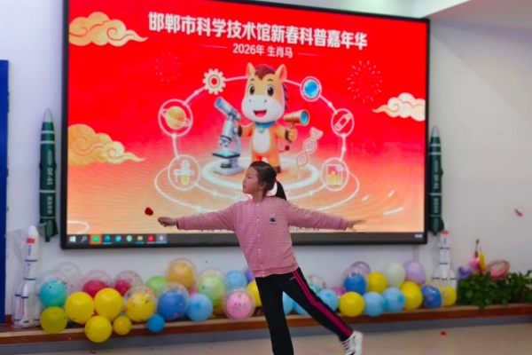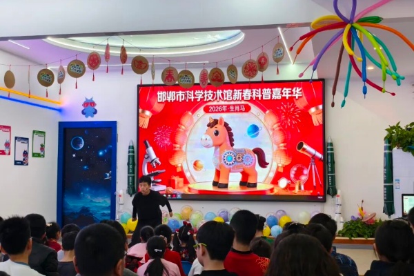 金蛇辞旧岁,骏马报新春。近日,邯郸市科技馆2026 年新春科普嘉年华活动圆满落幕。这场由小朋友担纲主角的科普盛宴,融合了新春民俗、文艺展演与科学精神,为观众们献上了一份兼具年味与科普味的新春大礼。