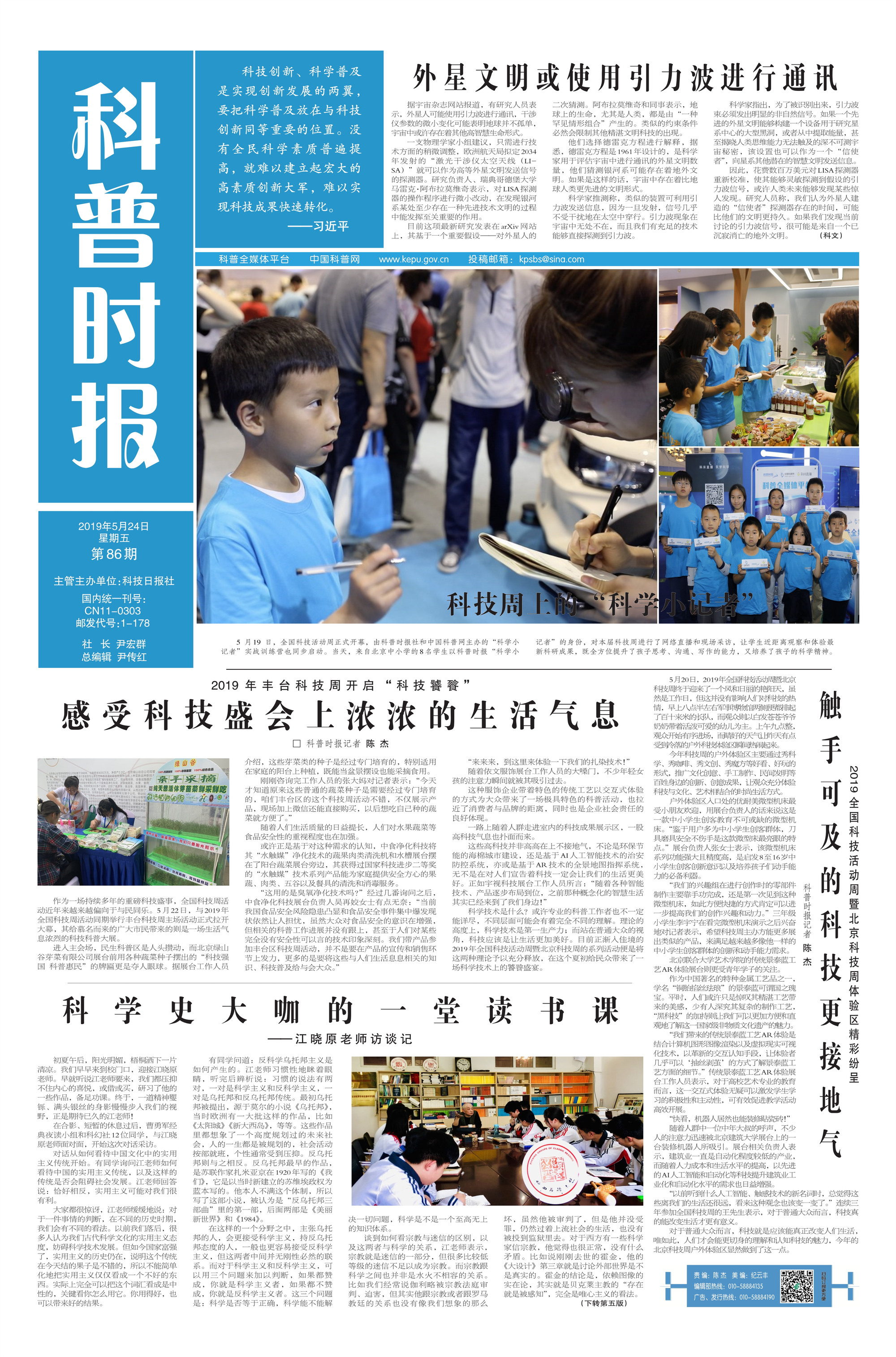 为了积极响应习总书记“科技创新、科学普及是实现创新发展的两翼,要把科学普及放在与科技创新同等重要的位置”重要指示精神,中央主流媒体科技日报于2017年9月创办我国第一份综合性科普周报——《科普时报》,旨在打造权威优质的国家级科普传播平台。